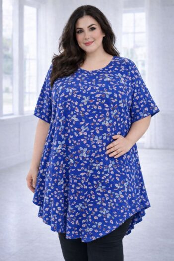 Вільна туніка у стилі пончо квітковий принт 000-1275