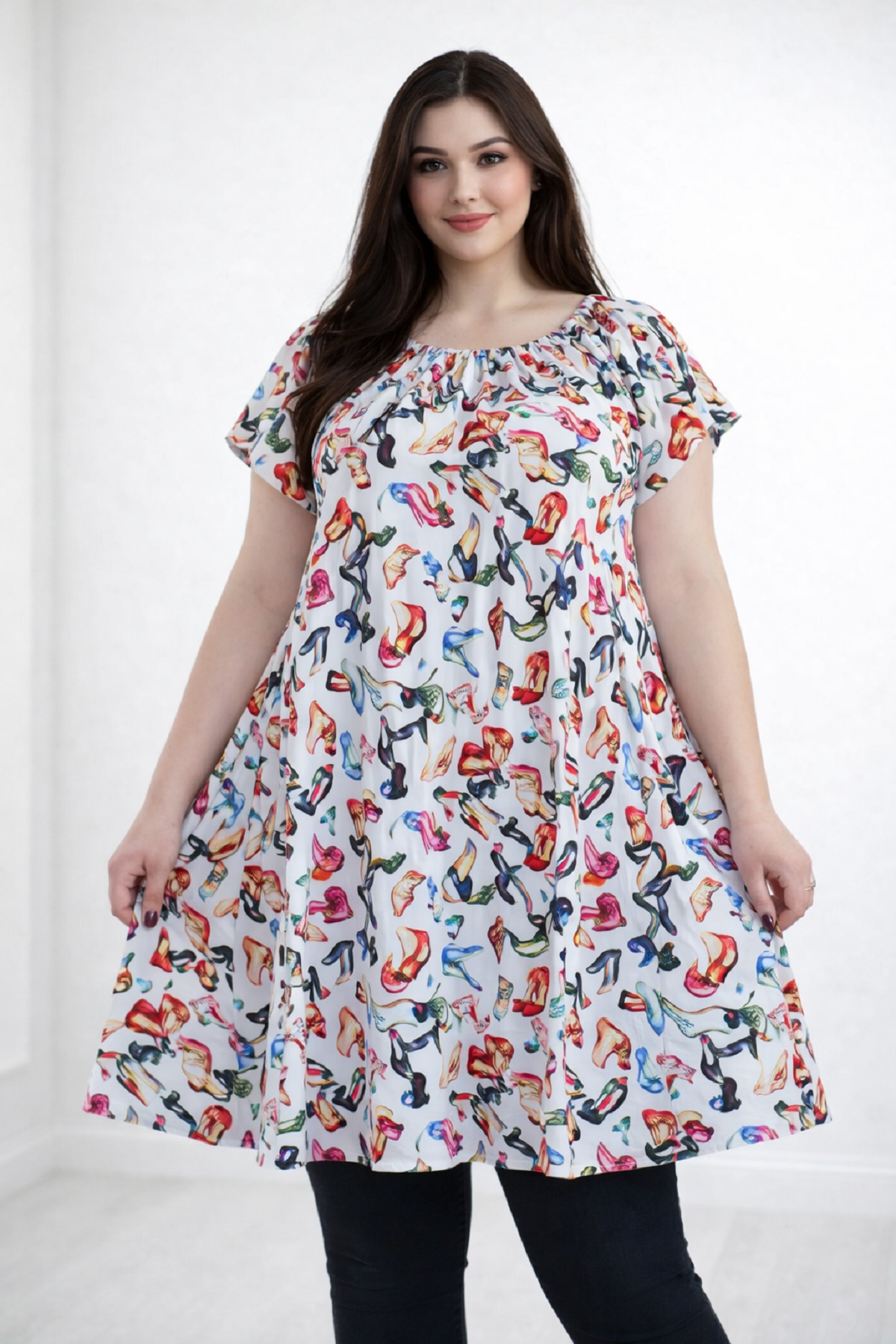 Туніка легка літня вільний крій приховує всі недоліки фігури. Рукав крій реглан.