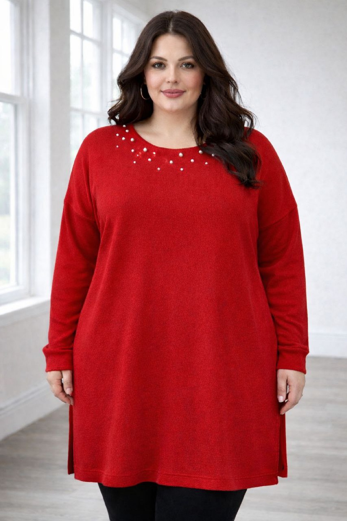 Туника прямого кроя по низу бока изделия разрезы.