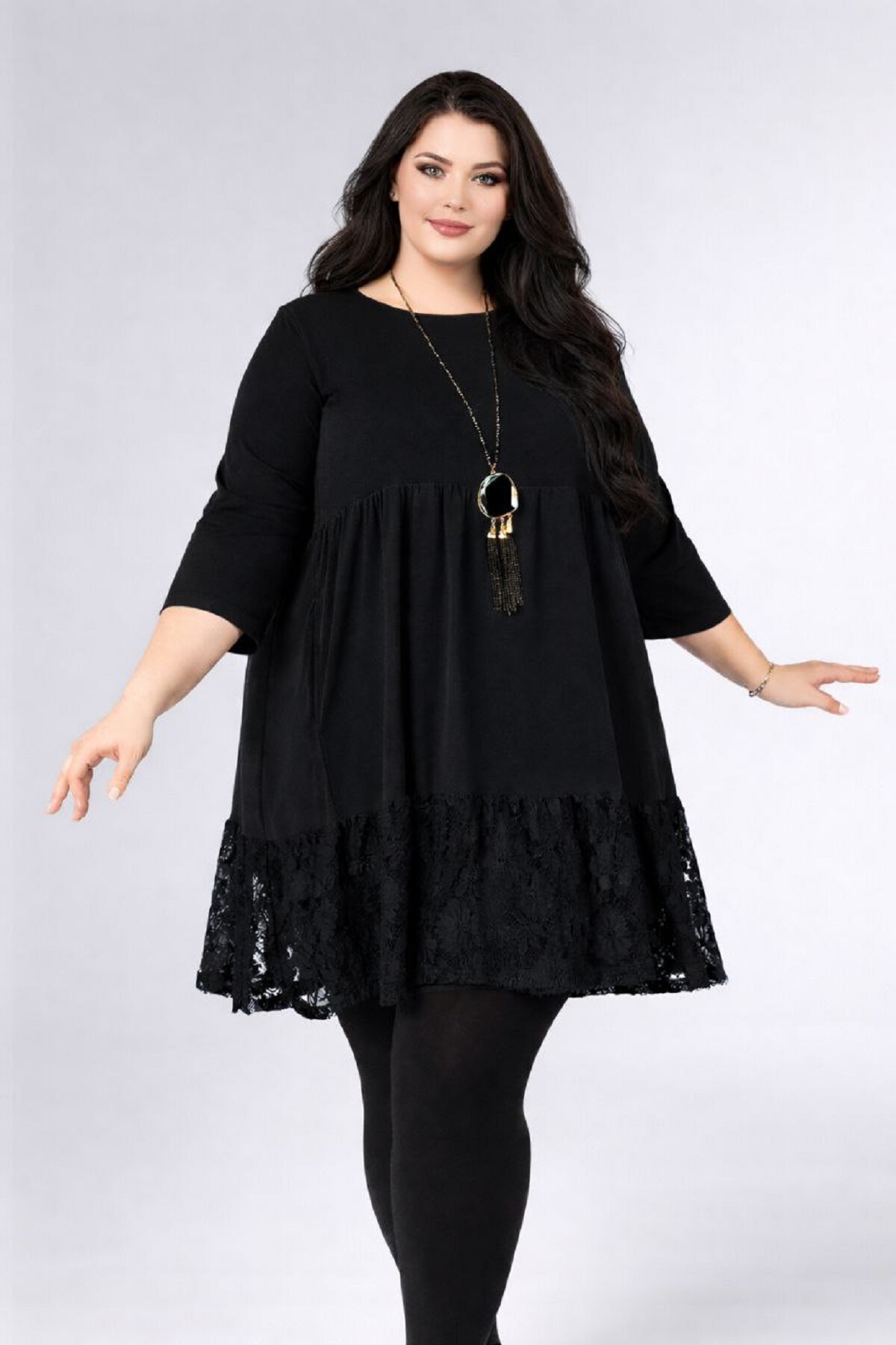 Тканина трикота “масло”+стрейч гіпюр, з рукавом 3/4 та завищеною талією, декорована в нижній частині виробу гіпюром, підійде для повсякденного використання та для особливих випадків.