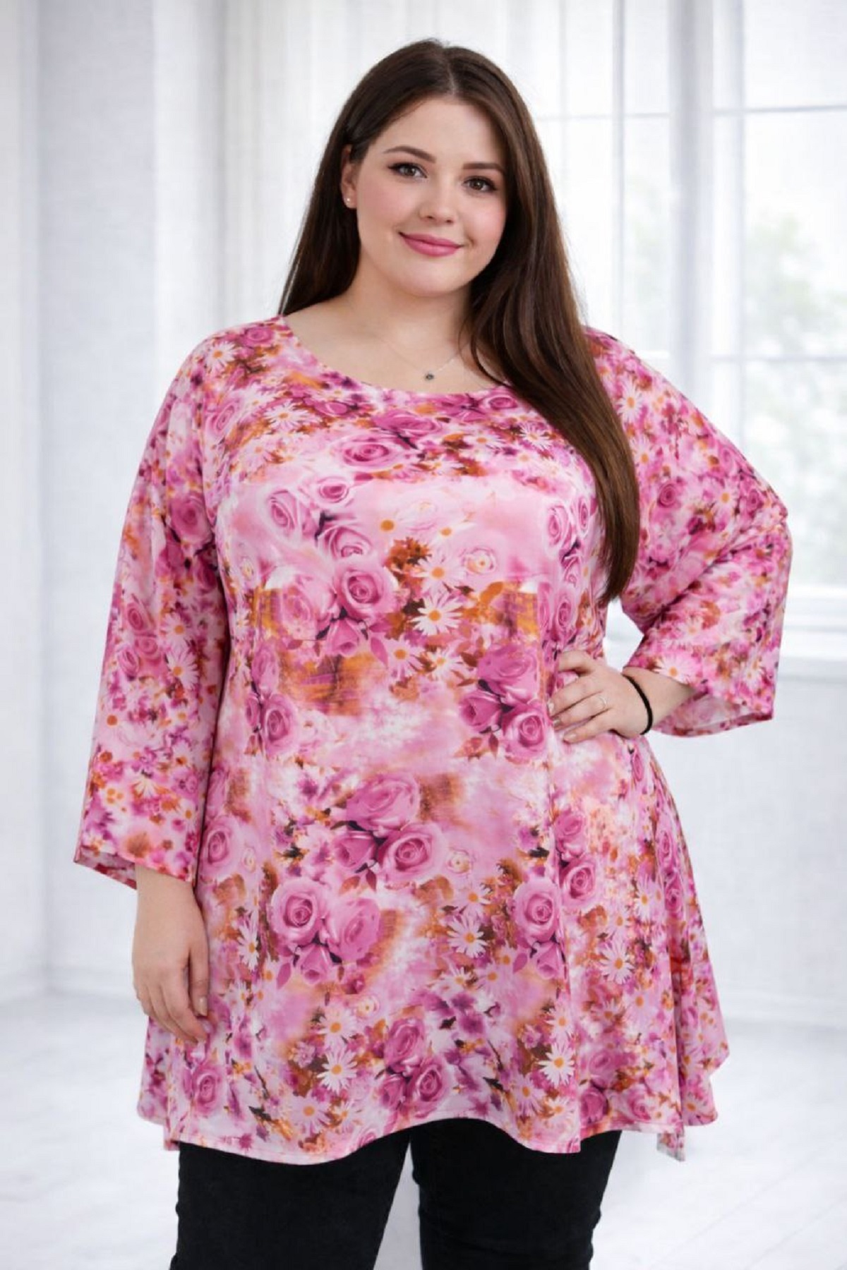 Туніка ошатна великого розміру в квытковий принт 000-651