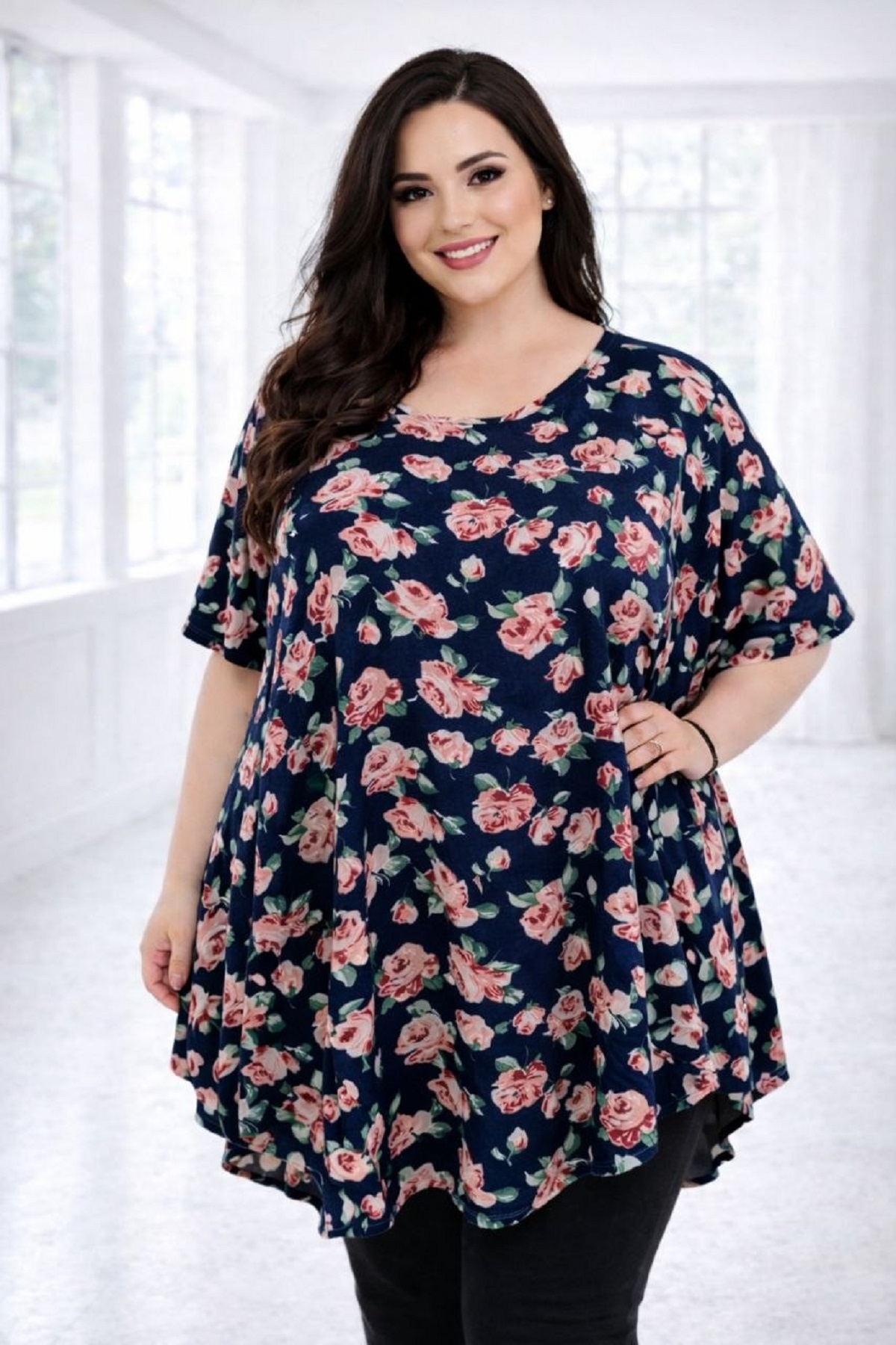 Вільна туніка у стилі пончо 000-1278