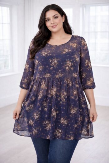 Легка літня туніка великого розміру із крепдешина Галинка 000-495